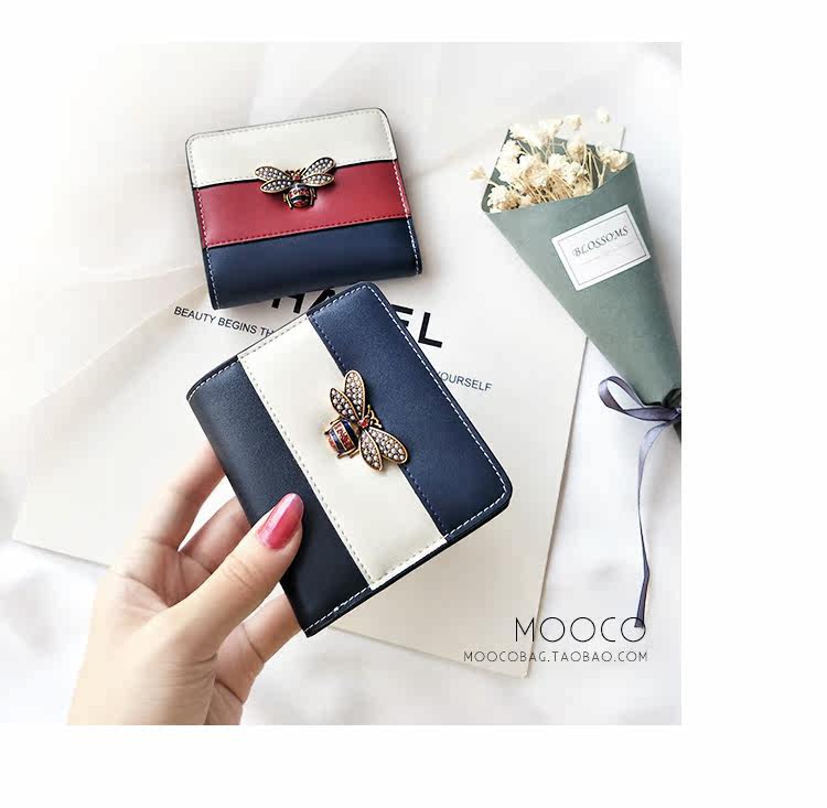 dior小蜜蜂系列手袋 小蜜蜂兩折真皮短款小錢包女2020歐美新款牛皮拼色超薄多卡位皮夾 dior小蜜蜂包