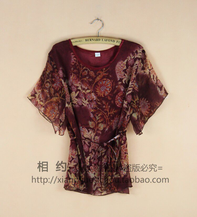 gucci男表100 清倉 100%桑蠶絲系帶短袖上衣 真絲T恤 女 gucci男表