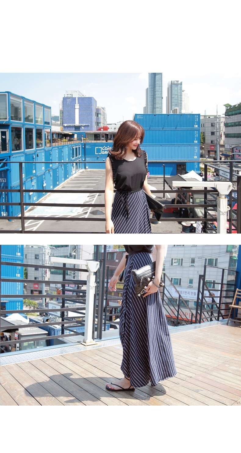gucci腰帶代購才1200 韓國代購新款條紋A字大擺包臀長裙夏季高腰顯瘦系帶修身半身裙女 gucci腰帶