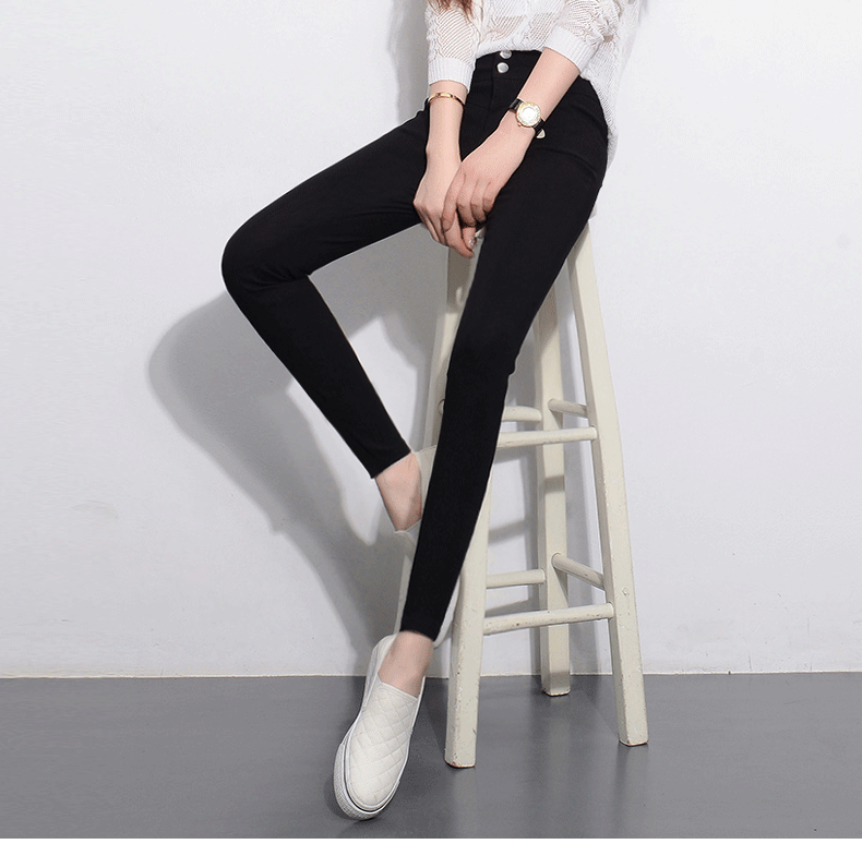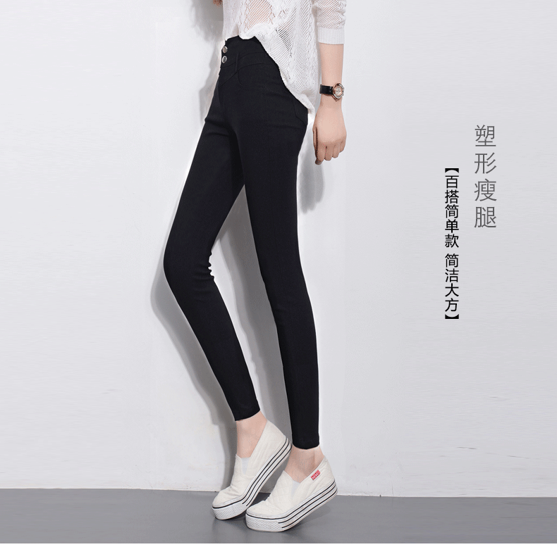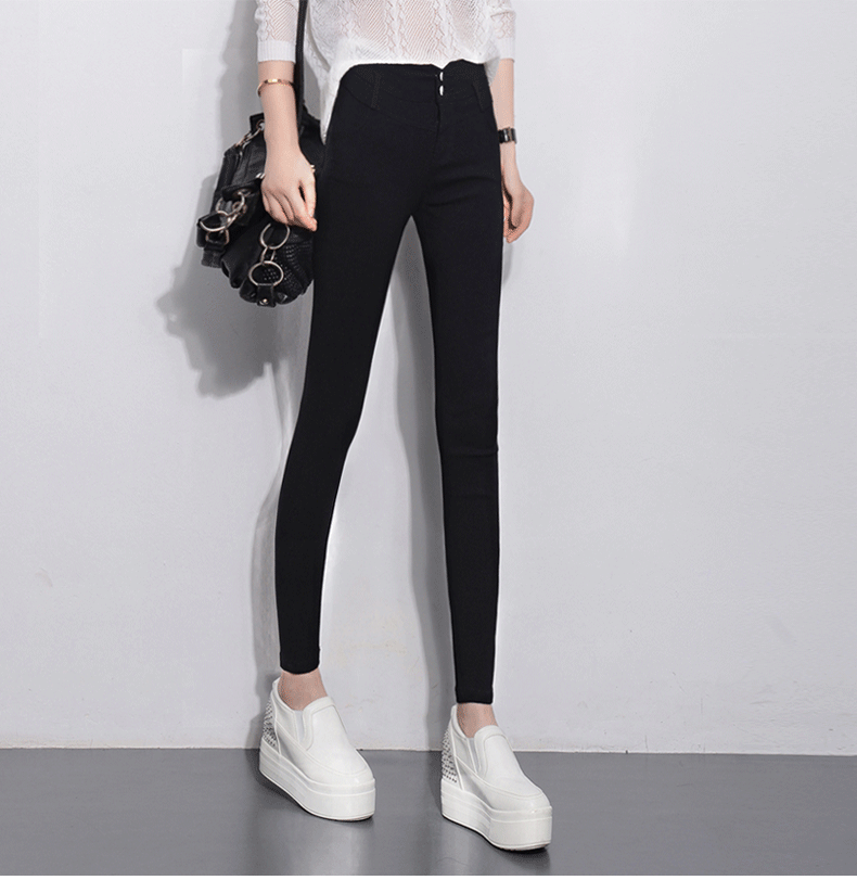 gucci義大利庫子 樂庫優春彈力高腰排扣小腳褲長褲黑色外穿打底褲鉛筆褲女褲子 gucci大衣