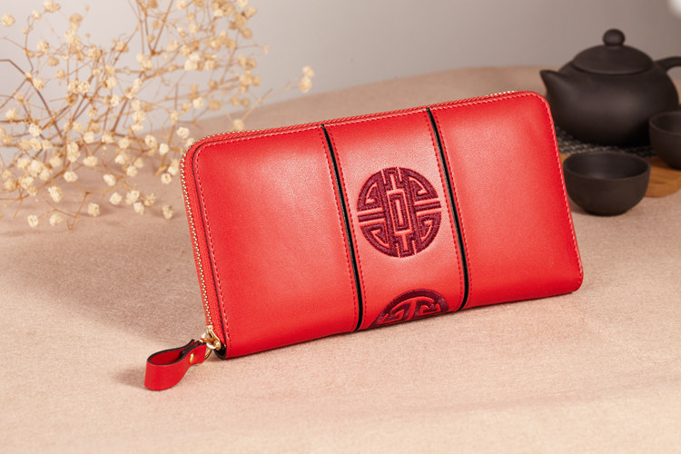 大紅色prada錢包 清倉款售完下架-中式古典大紅色女士長款牛皮拉鏈錢包真皮錢夾女 prada錢包