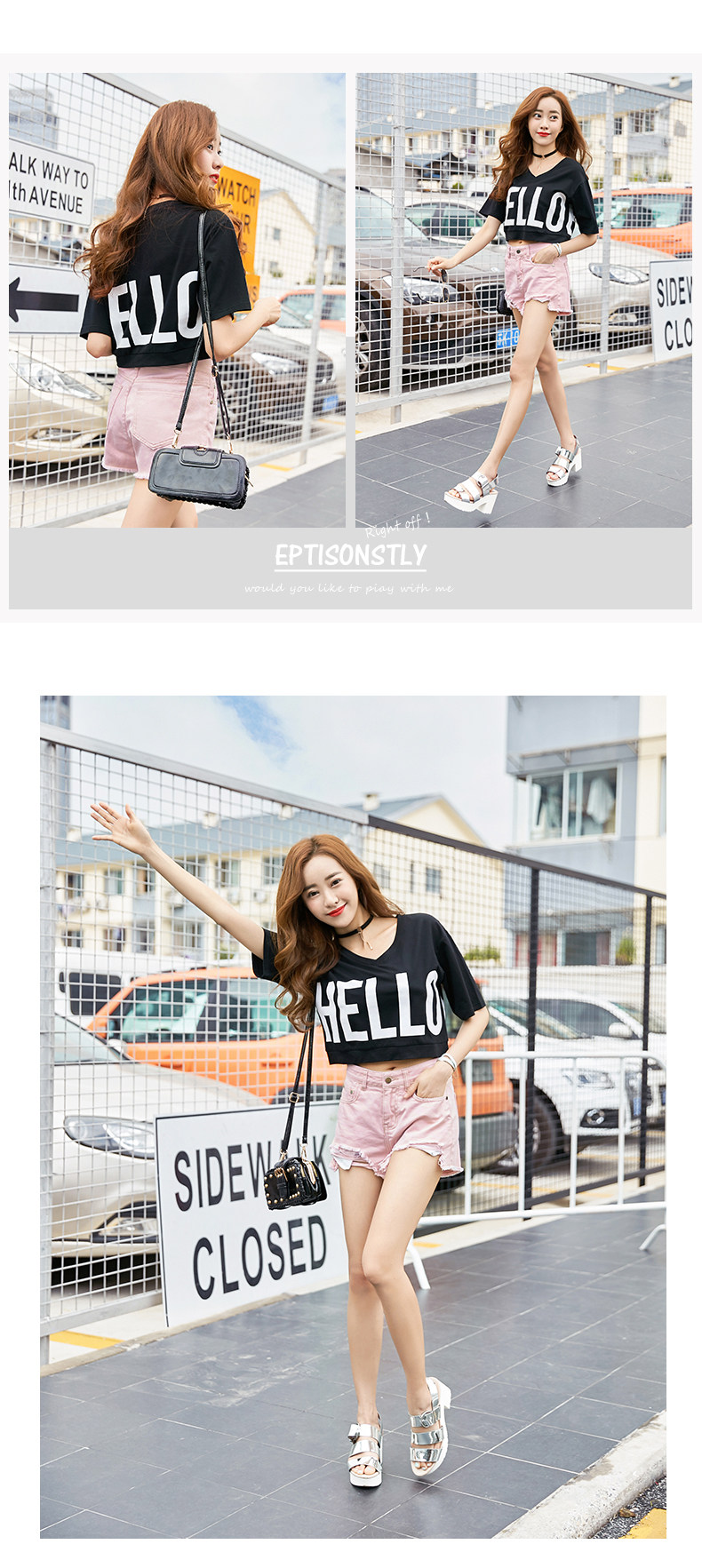普拉達字母什麼地方能買到 買3免1 2020韓版女裝夏裝新款寬松V領T恤女直筒字母印花百搭T 普拉達店
