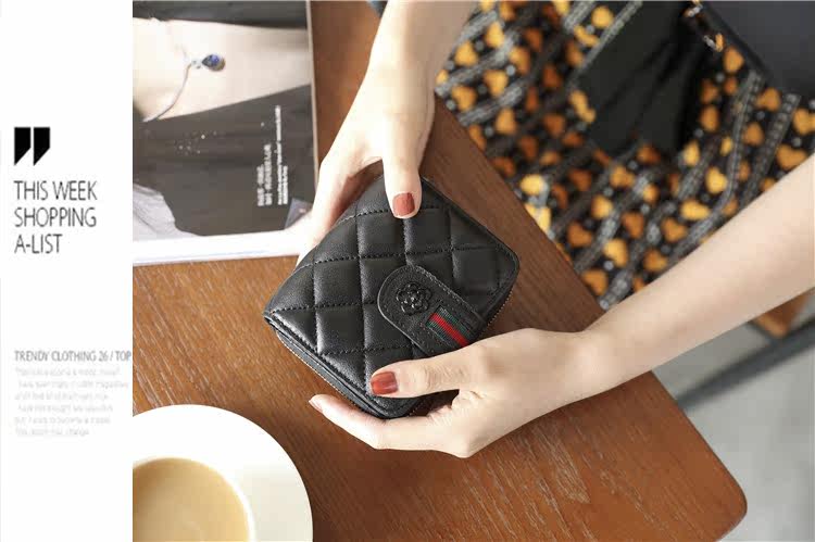 prada錢包價格列表 2020新款歐美菱格羊皮女士錢包潮女短款流蘇真皮夾卡夾卡位零錢包 prada錢夾價格